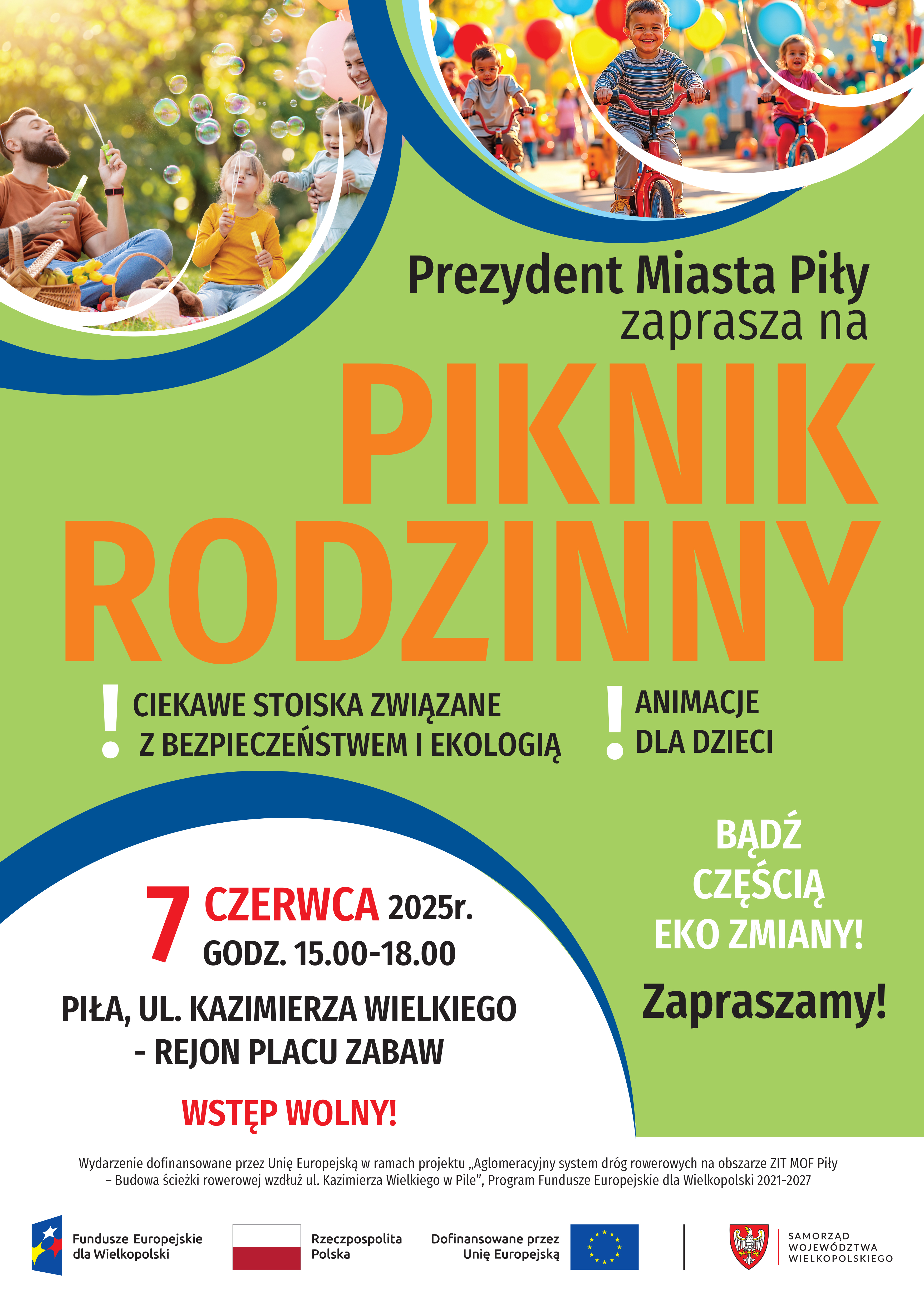 Piknik organizowany jest w ramach projektu „Aglomeracyjny system dróg rowerowych na obszarze ZIT MOF Piły – Budowa ścieżki rowerowej wzdłuż ul. Kazimierza Wielkiego w Pile”, współfinansowanego przez Unię Europejską, Program Fundusze Europejskie dla Wielkopolski 2021-2027. Realizacja projektu objęła budowę ścieżki pieszo-rowerowej wzdłuż ul. Kazimierza Wielkiego na odcinku od ul. Szkolnej do al. Niepodległości, będącej kontynuacją istniejącej już w tym rejonie ścieżki.
