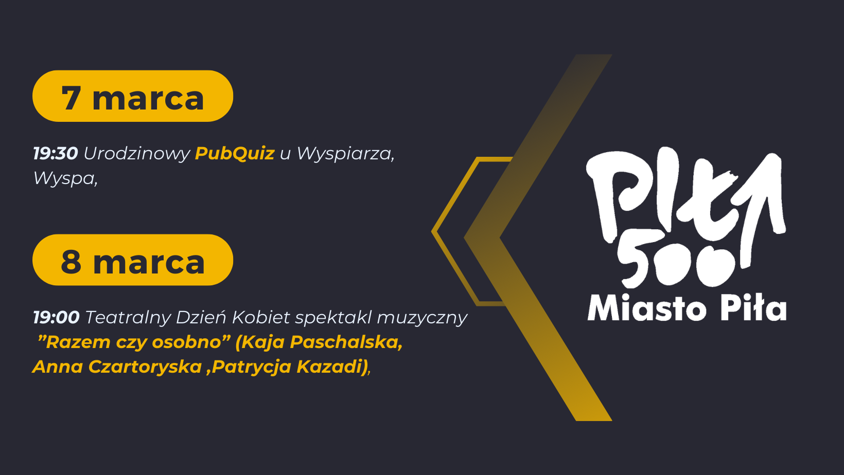URODZINY MIASTA PIŁY; 2 marca – 10 marca 2024 r.; koncerty, spektakle teatralne, seanse filmowe, wydarzenia społeczne, wydarzenia religijne, wydarzenia rekreacyjne, uroczystości publiczne; różne miejsca Piły
